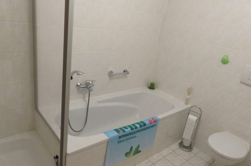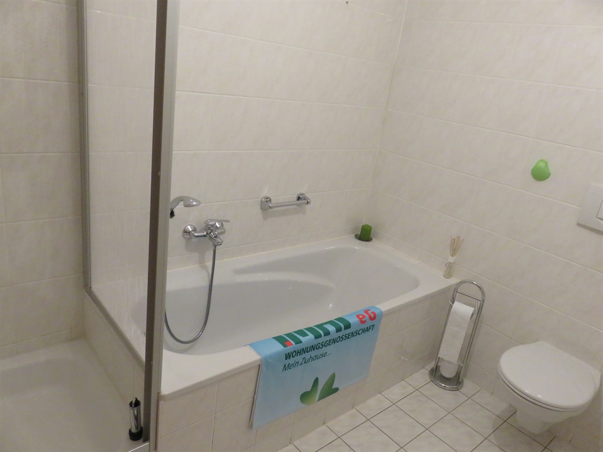 - gefliestes Bad mit Badewanne und Dusche