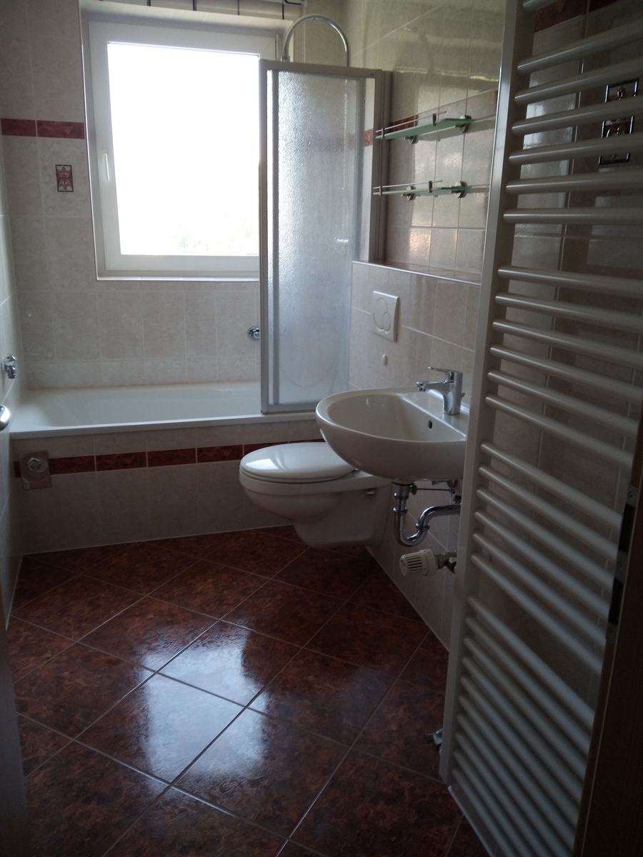 - E-Herdanschluss- Tageslichtbad mit Badewanne und Duschwandaufsatz
